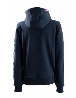 Klasický strih, kvalitné výšivky, kangoo vrecká na zips.